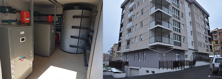 Objekat je 400 m2 stambenog i 200 m2 u proizvodnoj hali, u objekat je ugrađena Toplotna pumpa Voda-Voda 42KW ( 42Kw grejne snage, 32KW rashladne snage). U samom objektu je kombinacija radijatora, podnog grijanja i fancoiler-a. Objekat posjeduje toplotnu izolacije do 5cm stiropora. Želimo da naglasimo da smo jako ponosni sa ovim objektom jer ovaj objekat bilježi rekordne rezultate, u najhladnijim mjesecima godine gdje je prosječna temperatura bila -8c, grijanje čitavog objekta na mjesečnom nivou je koštalo 300km.